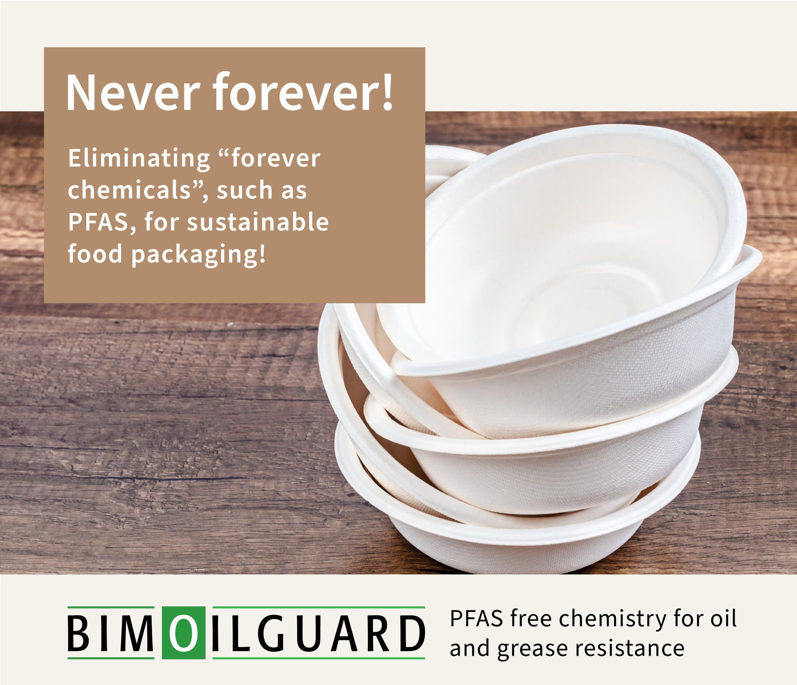 The BIM Oilguard concept (BIM MFO range) is designed to eliminate the need for PFAS in all types of food packaging, such as moulded fibre trays and bowls, food wrapping paper and cardboard pizza cartoons.